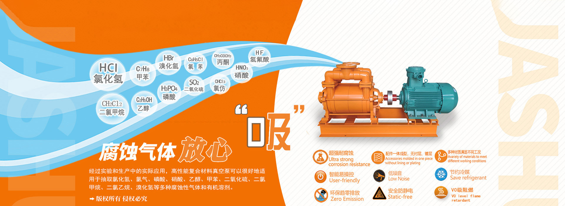 公司獨立研發(fā)的具有自主知識產權的多項專利產品 一耐腐蝕系列水環(huán)式真空泵。